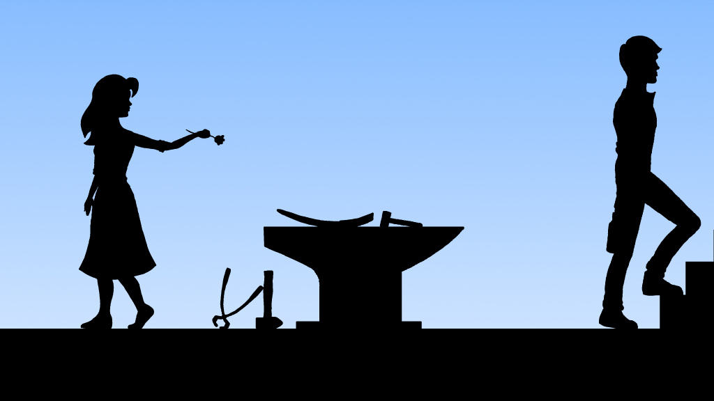 Nie schafft sie es dem Schmied eine Blume als Zeichen der Zuneigung zu überreichen, erst als er stirbt hat sie Gelegenheit ihm die Blume zu geben, die sie ihm schon ihr ganzes Leben lang schenken will und sie legt sie auf sein Grab.