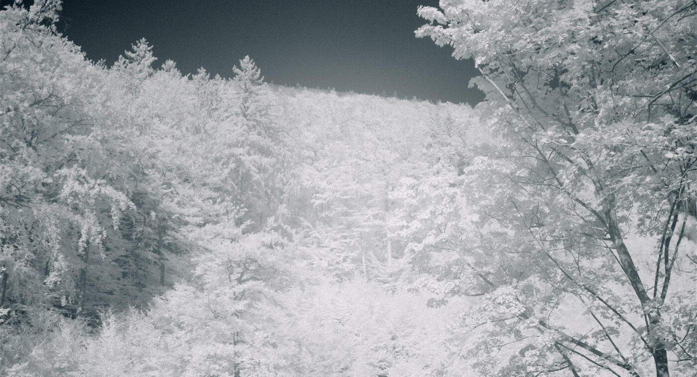 Durch diese Maßnahme soll dem sauren Regen entgegengewirkt werden, der die Waldböden belastet. Ein Kreislauf wie eine Möbiusschleife – den irreversiblen Konsequenzen des Rohstoffabbaus geschuldet, um das fragile Gleichgewicht der Natur wiederherzustellen. Kalkstaub legt sich behutsam auf dem Waldboden ab. Eine weiße, sphärische Gegenwelt öffnet sich, die unser ambivalentes Verhältnis zur Natur hinterfragt.