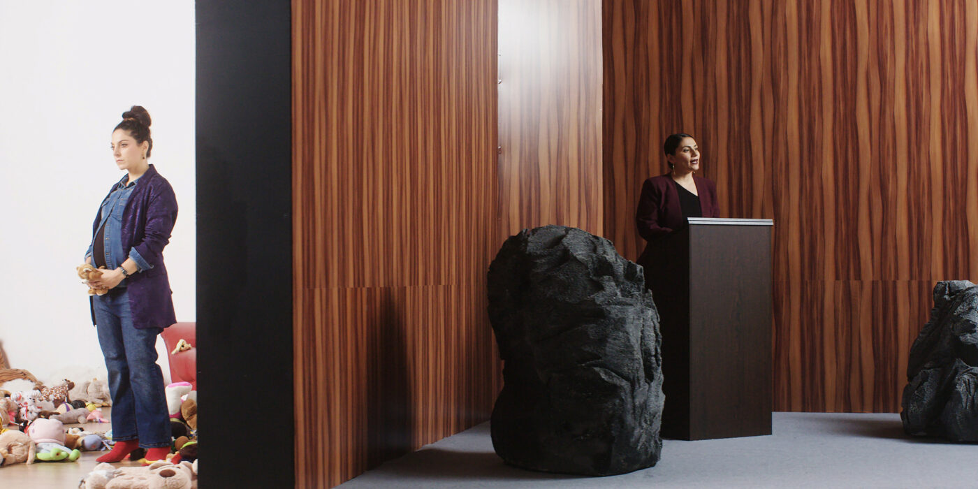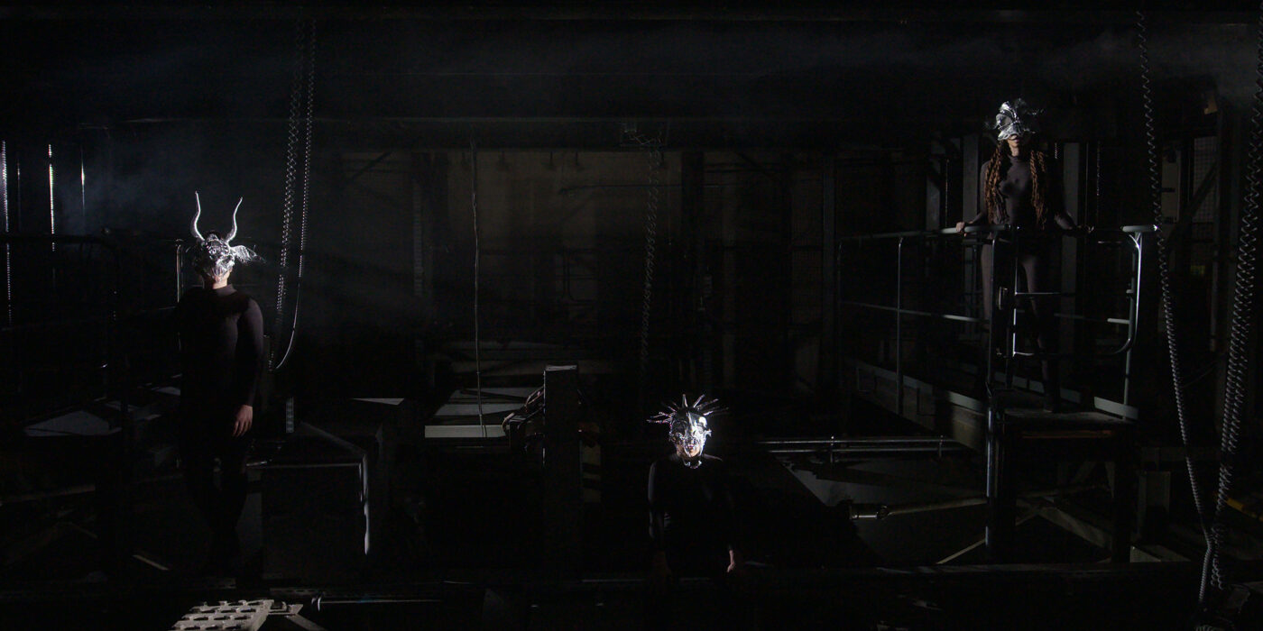 Vier Frauen* halten auf einer Bühne Monologe über ihre Lebensrealität, während die ständige Drehung der Bühne sie immer wieder unterbricht. Hinter den Kulissen warten dunkle Gestalten auf ihren Einsatz. Antike Mythologie und Gegenwart vermischen sich zu einem intersektionaler Dialog.