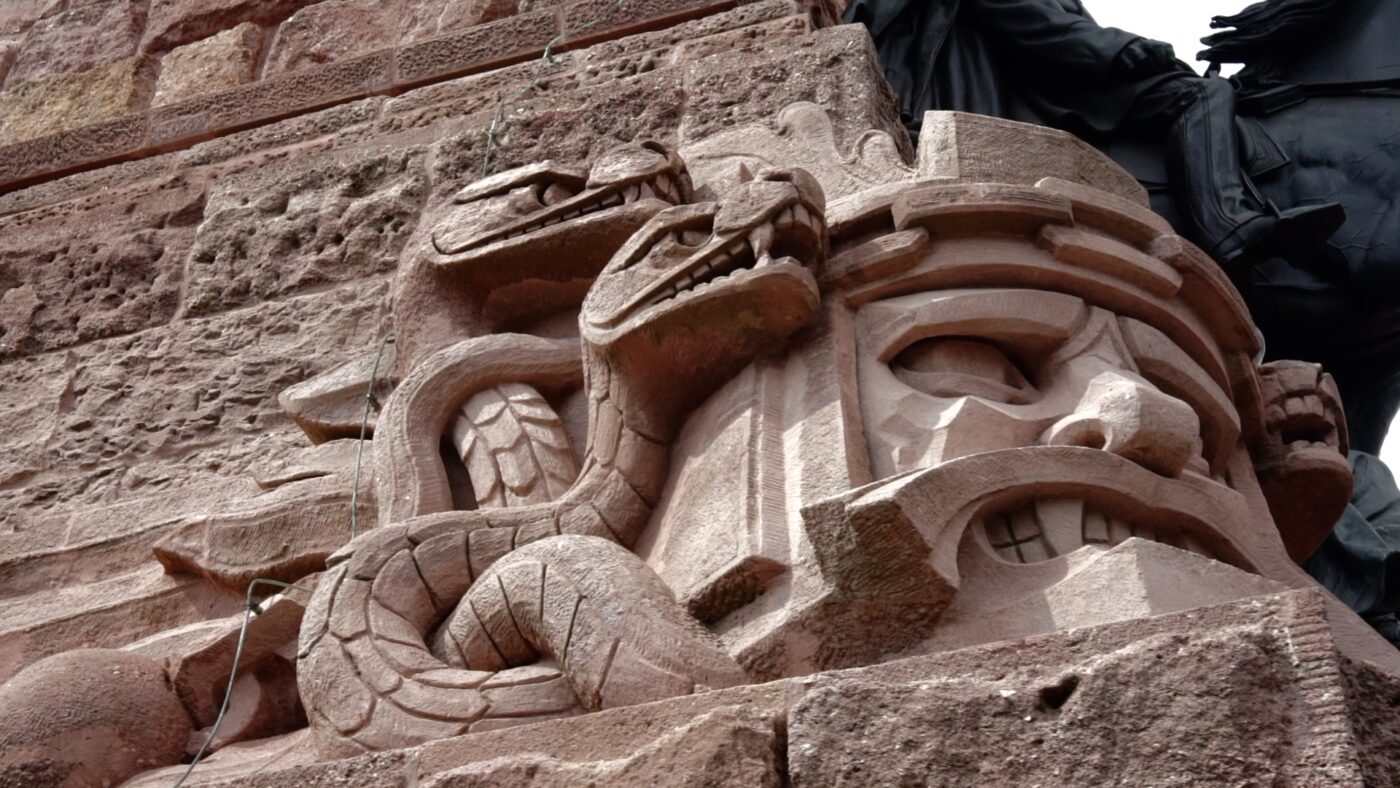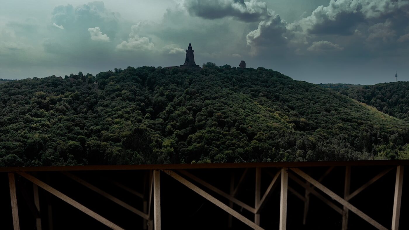 Perspektivwechsel: Auf einer Reise zu den größten deutschen Nationaldenkmälern liegt der Fokus nicht auf den massiven Strukturen, sondern auf den kleinsten Bewohnern der Landschaft. Eifrig krabbeln und kriechen sie über die schroffen Steine und werden Teil einer mythologischen Konversation.