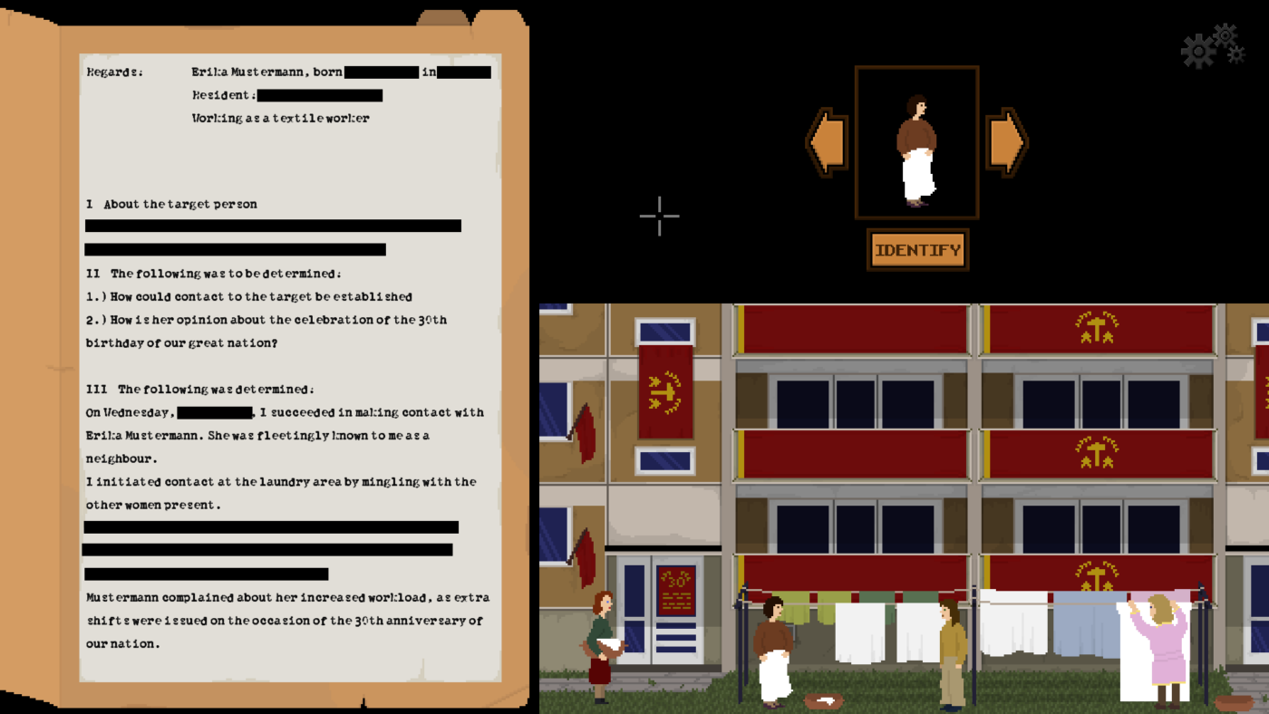 Nach dem Untergang der "Großen Nation" wird bekannt, wie diese ihre eigenen Bürger*innen ausspionierte. Informelle Mitarbeiter bespitzelten Nachbarn, Freunde und Familienangehörige. Jahre später stellt sich Erika Mustermann ihrer Vergangenheit. Ein Point-and-Click Abenteuer.